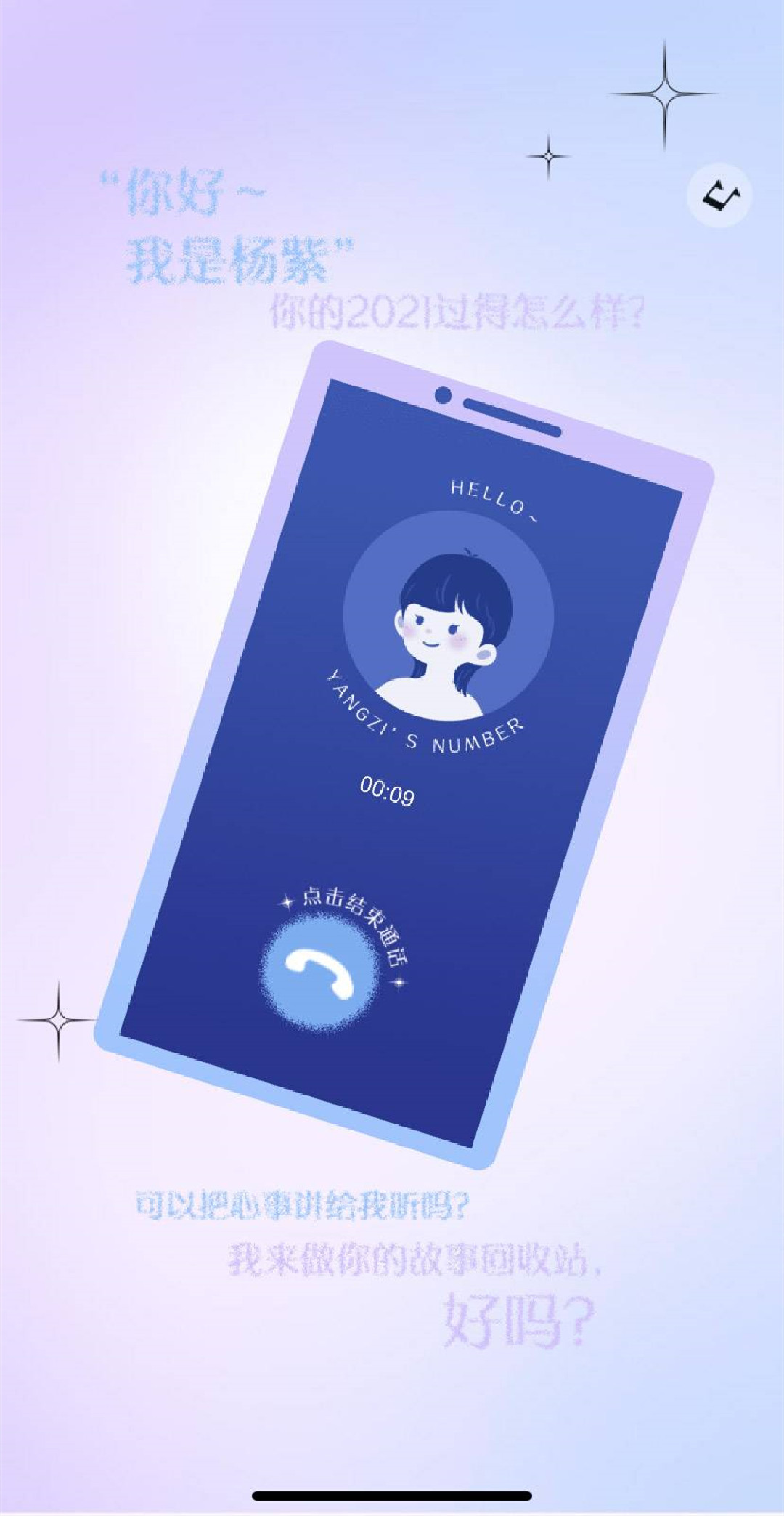 杨紫邀请用户回顾2021年开心的和遗憾的事,总结关键词,规划即将到来的2022,同时为优酷热播“心理师”做宣传。